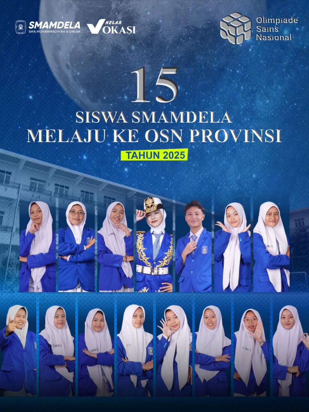 Alhamdulillah , selamat untuk 15 siswa luar biasa Smamdela yang melaju ke OSN Provinsi 2025 ๐ Bidang lomba: ๐ Matematika | โ๏ธ Fisika | ๐งช Kimia |๐ซ Astronomi | ๐ Kebumian | ๐น Ekonomi ๐ Doakan langkah mereka menjadi cahaya bagi prestasi sekolah dan bangsa! . #Smamdela #SekolahSangJuara #smadigresik #sekolahunggulan . . FIND US ON : *Website* : www.smamdelagres.sch.id *Instagram* :ย @smamdelagresย *Facebook* : Smamdela Sangjuara *YouTube* : SMA Muhammadiyah 8 Gresik *Tiktok* :ย @smamdelagresย *WA* : 0812 3098 2066