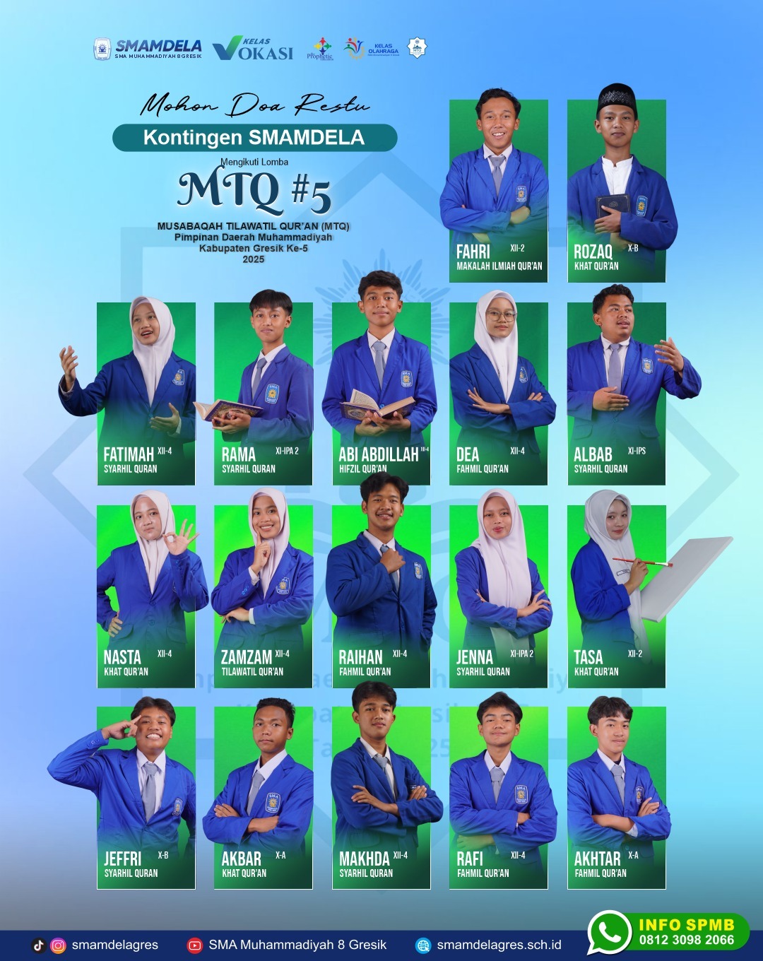 Kontingen terbaik dari SMAMDELA (SMA Muhammadiyah 8 Gresik) siap melangkah menuju ajang Musabaqah Tilawatil Qur’an (MTQ) #5 Pimpinan Daerah Muhammadiyah Kabupaten Gresik Tahun 2025 📖✨