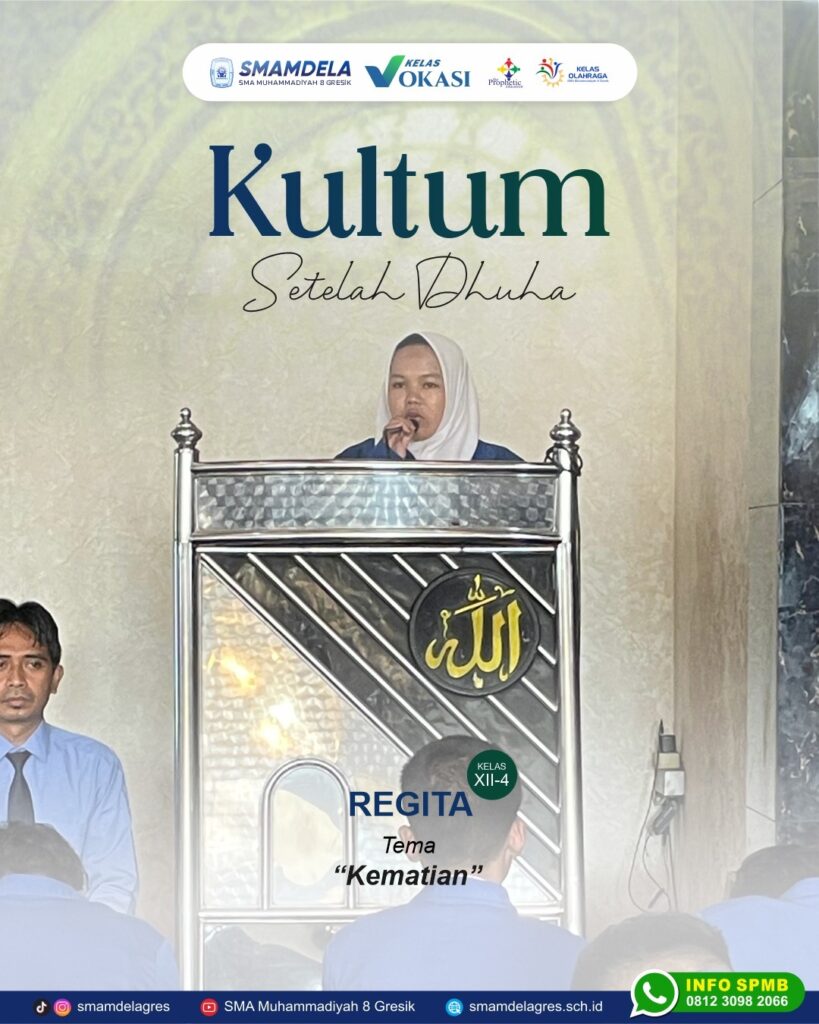 🌸 Kultum Setelah Dhuha 🌸 Hari ini kultum disampaikan oleh Regita (XII-4) dengan tema: “Kematian” 🕊 Sebuah pengingat bahwa hidup hanyalah sementara, dan kematian pasti akan datang. Mari persiapkan diri dengan amal shalih agar kelak kita kembali kepada Allah dalam keadaan husnul khatimah 🤲✨ #SMAMDELA #KultumDhuha #SMAMuhammadiyah8Gresik #PengingatDiri #Kematian