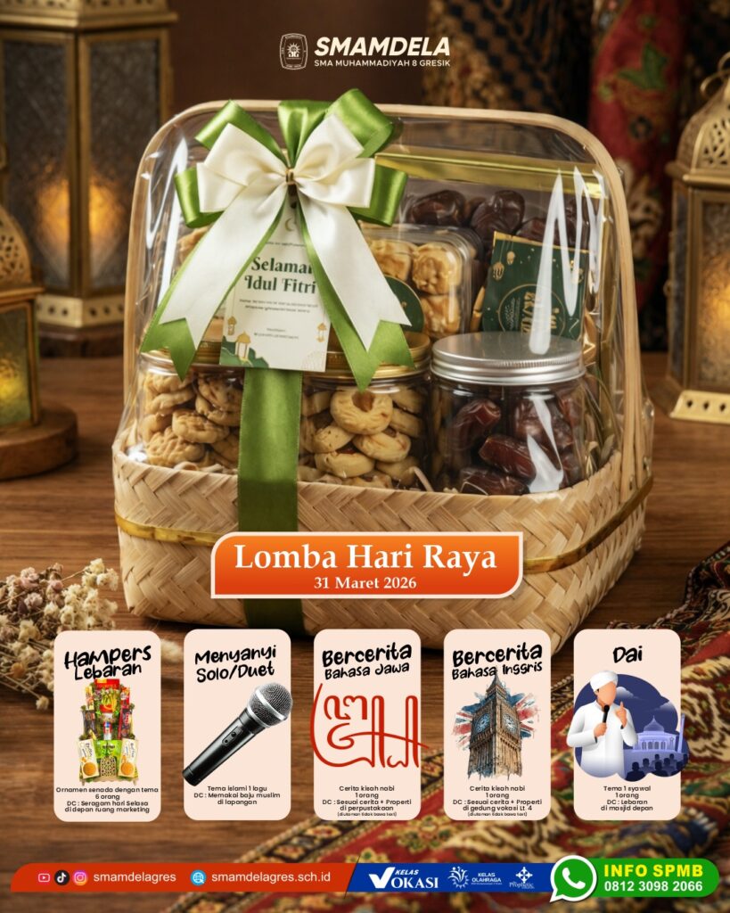 Semarakkan momen kebersamaan di Hari Raya dengan berbagai lomba seru, kreatif, dan penuh makna! Mulai dari kreativitas hampers Lebaran, unjuk bakat menyanyi, hingga kemampuan bercerita dalam bahasa Jawa dan Inggris, serta dakwah yang inspiratif — semua menjadi wadah bagi siswa untuk mengekspresikan diri dan mengasah potensi terbaiknya. Mari berpartisipasi, tunjukkan bakatmu, dan raih pengalaman berharga dalam suasana penuh kebersamaan dan keberkahan! #SMAMDELA #LombaHariRaya #SiswaBerprestasi #SekolahUnggul #GresikHebat