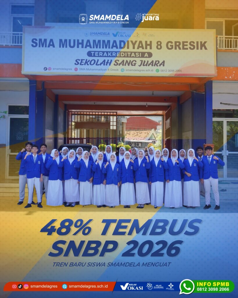 Alhamdulillah, 48% siswa SMAMDELA berhasil tembus SNBP 2026! Capaian ini menjadi bukti nyata komitmen kami dalam mendampingi siswa meraih masa depan terbaik. Dengan pembinaan yang terarah, lingkungan yang suportif, dan semangat juang tinggi, SMAMDELA terus melahirkan generasi unggul. ✨ Tren baru, siswa SMAMDELA semakin menguat! Terima kasih atas doa dan dukungan dari seluruh keluarga besar SMAMDELA. Semoga prestasi ini menjadi inspirasi bagi seluruh siswa untuk terus berjuang dan berprestasi. 🚀 Saatnya kamu jadi bagian dari Sekolah Sang Juara! #SMAMDELA #SekolahSangJuara #SNBP2026 #PrestasiSiswa #SPMB2026