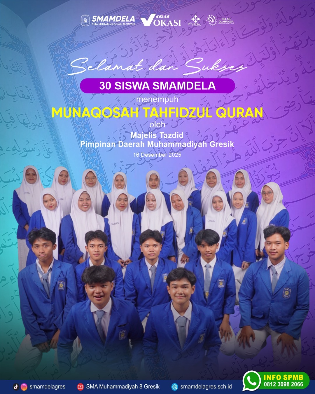 Selamat dan sukses kepada 30 siswa SMAMDELA yang akan menempuh Munaqosah Tahfidzul Qur’an