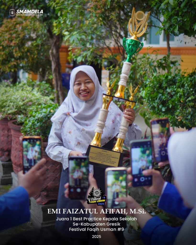 Prestasi Membanggakan! Selamat kepada Ibu Emi Faizatul Afifah, M.Si., Kepala SMA Muhammadiyah 8 Gresik (SMAMDELA), atas meraih Juara 1 Best Practice Kepala Sekolah se-Kabupaten Gresik dalam Festival Faqih Usman 9 Tahun 2025 Dedikasi, inovasi, dan semangat beliau menjadi inspirasi bagi seluruh warga sekolah untuk terus berprestasi dan berkontribusi bagi pendidikan yang berkemajuan #SMAMDELA #SMAMuhammadiyah8Gresik #FestivalFaqihUsman #BestPractice #KepalaSekolahBerprestasi #PrestasiGuru #Muhammadiyah #SekolahBerprestasi